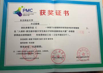 高分子材料与工程专业的“水过留痕”团队和“日月胶辉”团队参加了第五届中国大学生高分子材料创新创业大赛(PMC大赛),经过会务组30%初赛遴选,两个队伍顺利从177个参赛队伍中胜出,并于2017年10月17-20日参加了在青岛橡胶谷举办的PMC决赛现场。经过与来自四川大学、华南理工大学等58所高校的高分子专业参赛队伍的激烈角逐,“水过留痕”团队和“日月胶辉”团队最终均获得了二等奖的好成绩,指导教师韦双颖和张彦华分别获得了优秀指导教师荣誉称号。