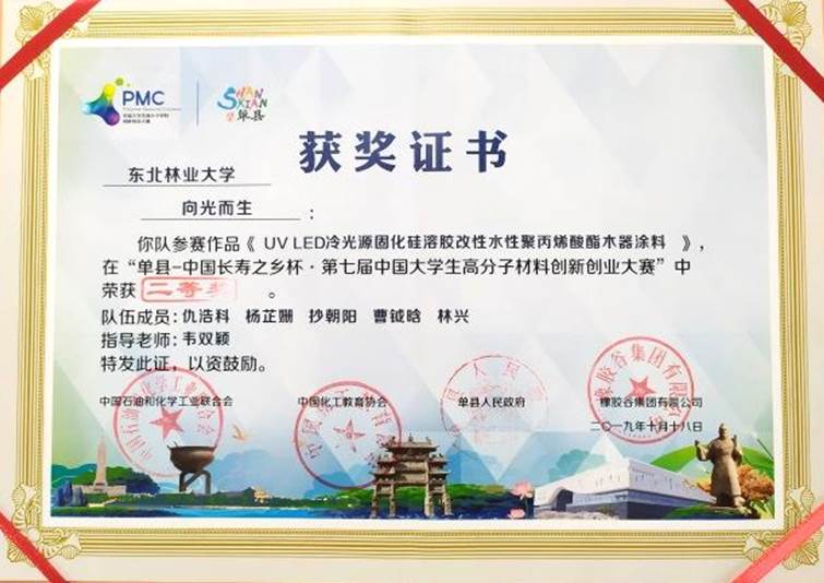 99499www威尼斯高分子材料与工程专业的两个参赛作品《UV LED冷光源固化硅溶胶改性水性聚丙烯酸酯木器涂料》(指导教师韦双颖)和《环境友好型木粉/淀粉/聚乳酸三元可降解绿色塑料的应用》(指导教师张彦华)进入决赛。经过激烈的竞争,两个作品均获得二等奖。