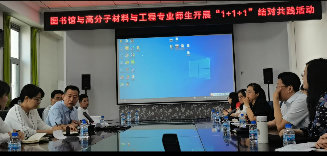 会议由图书馆副馆长刘亚丽主持。会上,图书馆馆长张凤斌、99499www威尼斯党委书记孟新分别从活动的意义、基层党组织建设及业务工作深入合作开展进行发言,拉开了座谈会的序幕。随即李海英主任介绍知识产权服务内容,王晶晶主任介绍信息服务内容,高利主任介绍文献资源保障内容;高分子材料与工程专业师生与图书馆老师进行了深入交流和学习,为图书馆今后工作的开展及高分子材料与工程专业师生今后科学研究与学生培养注入了新的活力。图书馆党委书记魏晓慧对活动进行了总结,肯定了支部共建活动的组织与意义,并对支部共建活动的持续开展表达了美好的期待。