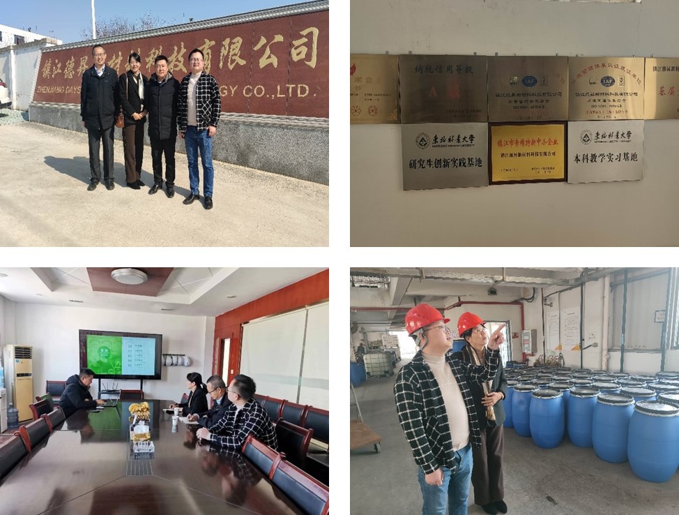 林业工程一级学科生物材料工程学科方向带头人高振华教授、专业负责人韦双颖教授以及专业骨干教师于2023年2月-4月期间,先后走访调研了金隅微观(沧州)化工有限公司(国有企业)、同享(苏州)电子材料科技股份有限公司(上市公司)、镇江德昇科技新材料有限公司、浙江升华云峰新材股份有限公司、哈尔滨市新农天丰塑料有限公司等企业,见下图所示。