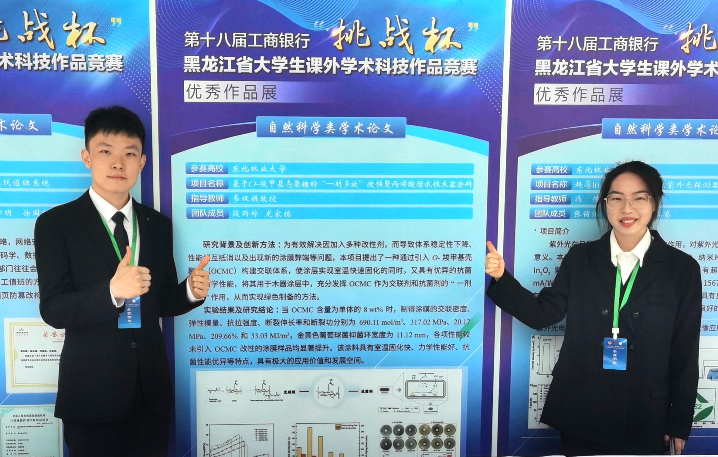 高分子材料与工程专业负责人韦双颖老师指导的作品“基于O-羧甲基壳聚糖的一剂多效改性聚丙酸酯水性木器涂料”在“挑战杯”校赛预选赛中获得特等奖,在省赛终审决赛中获得一等奖,并被推荐参加第十八届“挑战杯”全国大学生课外学术科技作品竞赛。项目负责人及团队成员为2020级高分子材料与工程专业本科生段雨婷、龙家栋同学。