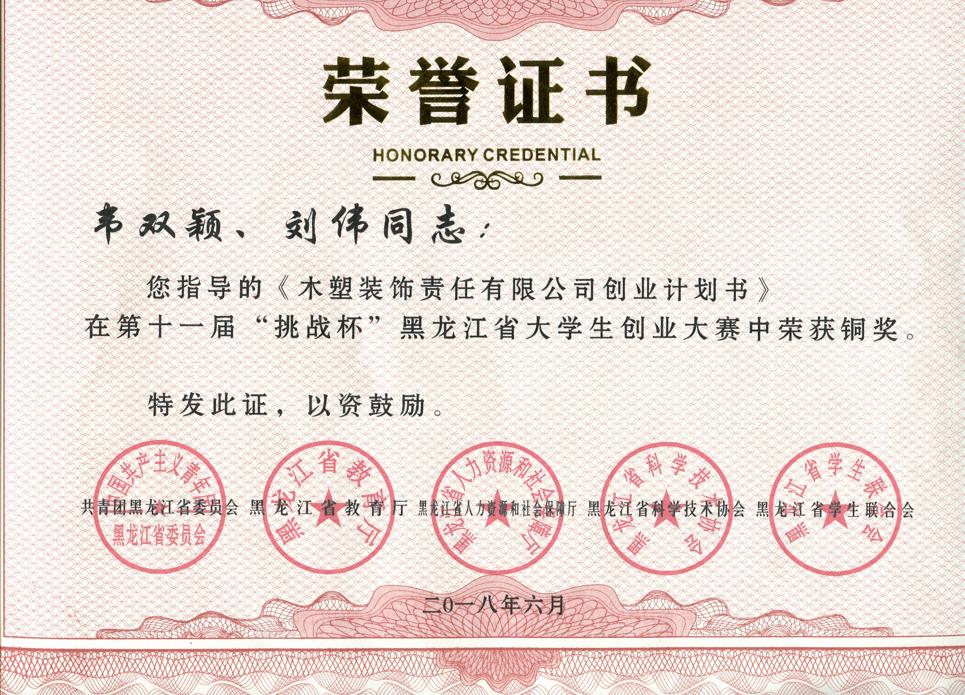 【获奖】韦双颖老师和刘伟老师带领团队获得黑龙江省大学生创业大赛中荣获铜奖