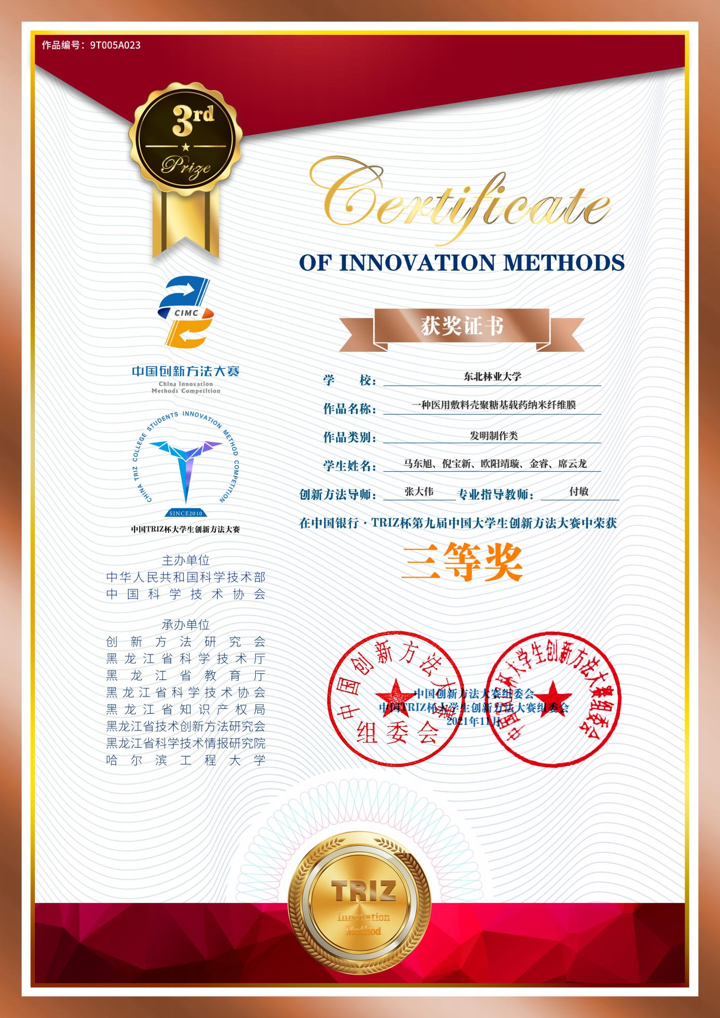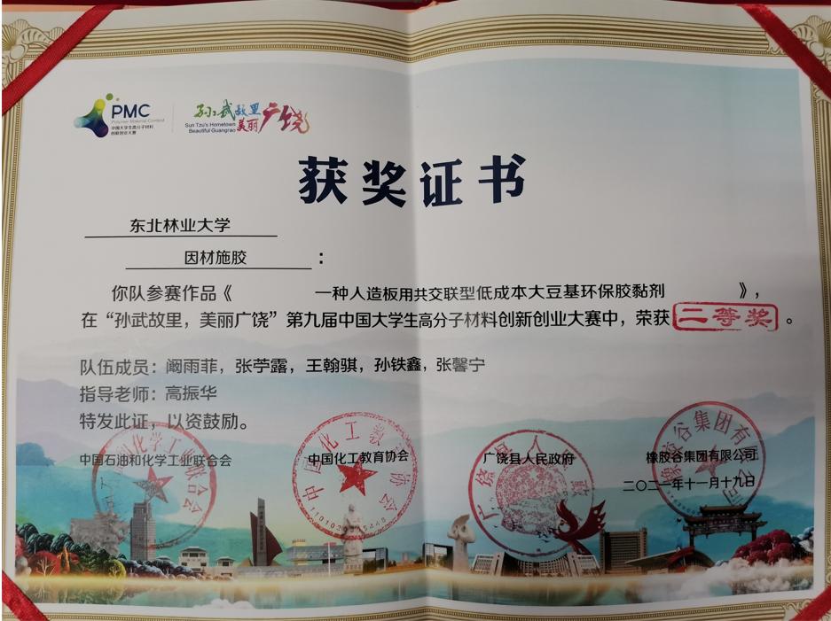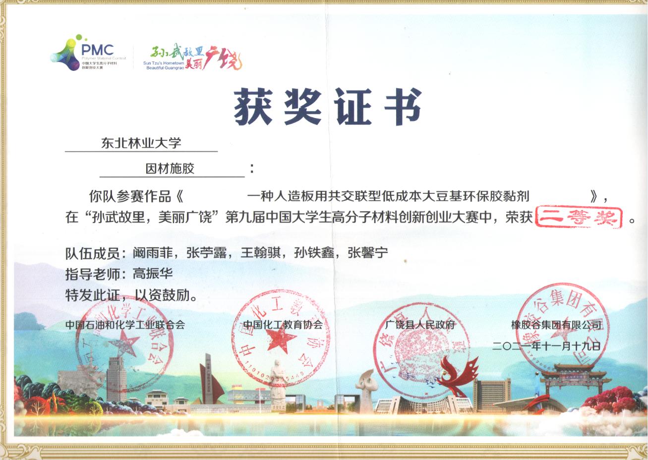 【获奖】专业张大伟老师带领学生团队获得‘华盛橡胶杯’第八届中国大学生高分子材料创新创业大赛三等奖