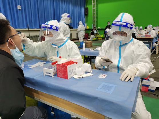 不忘初心,迎难而上。木材科学与技术党支部教师明确自己党员和教师的双重身份,积极主动报名,第一时间投身到学校防疫志愿服务队伍中去,配合一线的校医护人员,有序做好学校疫情防控工作。在30多天的志愿工作中,木材科学与技术党支部的12位驻校党员教师全都参与了核酸采样工作当中去。