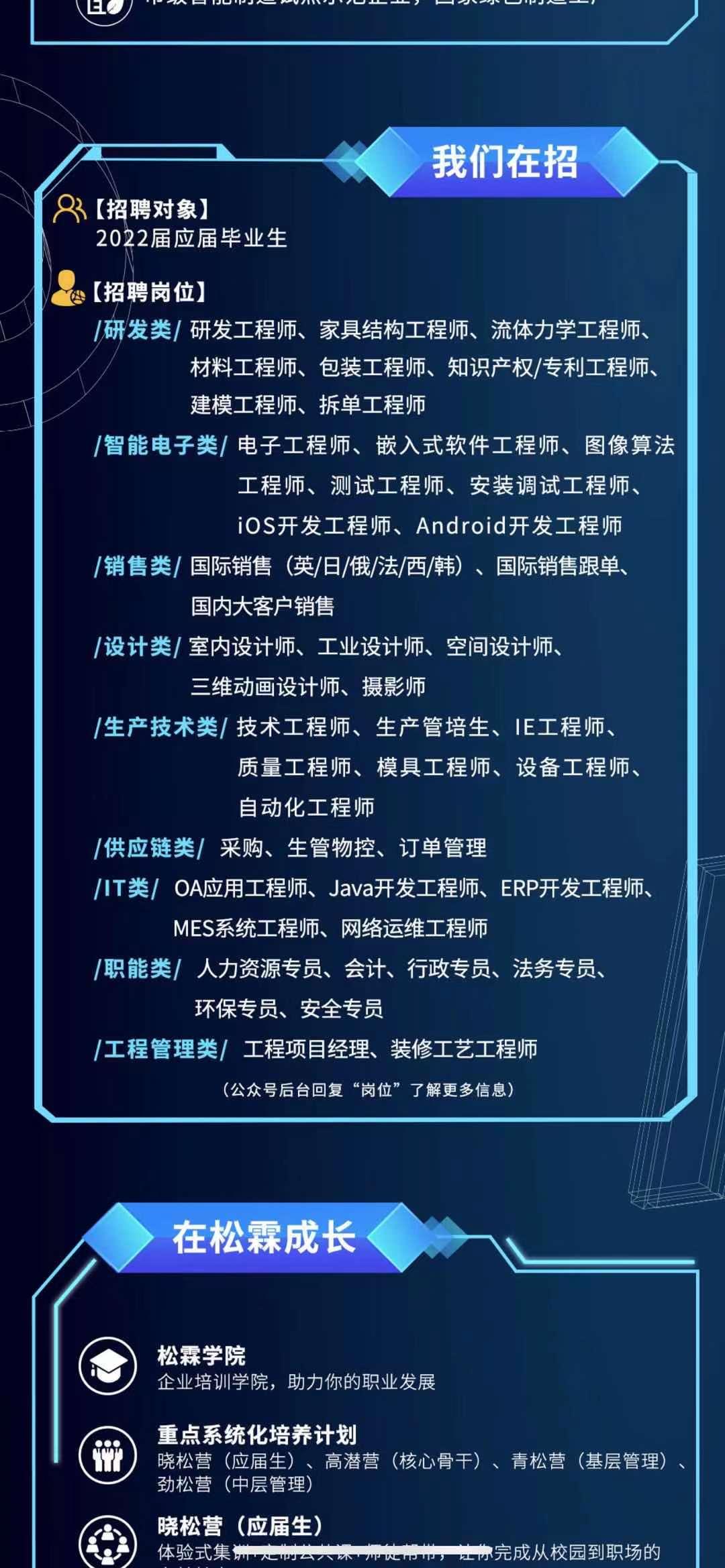 研发工程师、技术工程师、设备工程师、模具工程师、生产管培生、质量工程师、采购(详情请查看以下宣传图片)