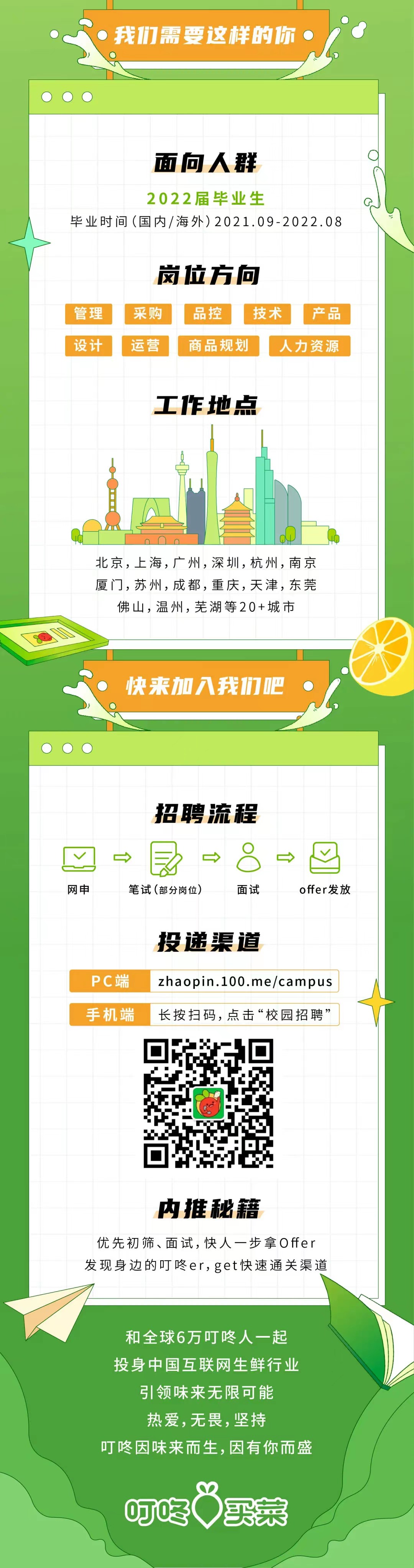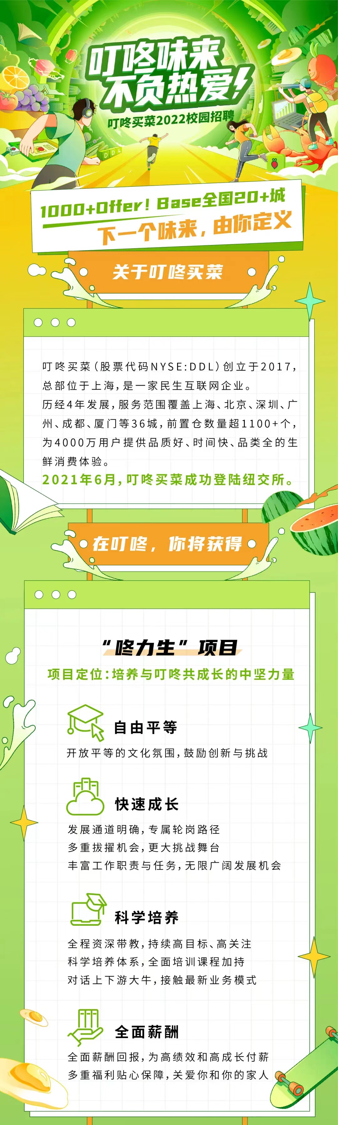 叮咚买菜(股票代码NYSE:DDL)创立于2017,总部位于上海,是一家民生互联网企业。历经4年发展,已覆盖上海、北京、深圳、广州、杭州,成都,重庆,厦门等36城,前置仓数量超过1100个,让4000万用户吃的开心,吃的安心。先后获得了多家国际一线机构的投资。