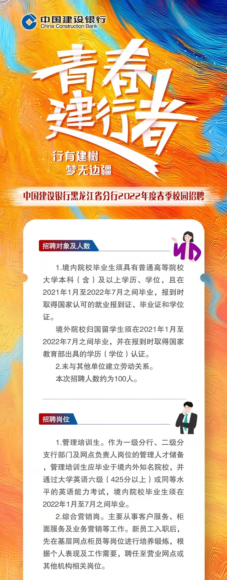 中国建设银行黑龙江省分行2022年招聘会东北林业大学站来啦