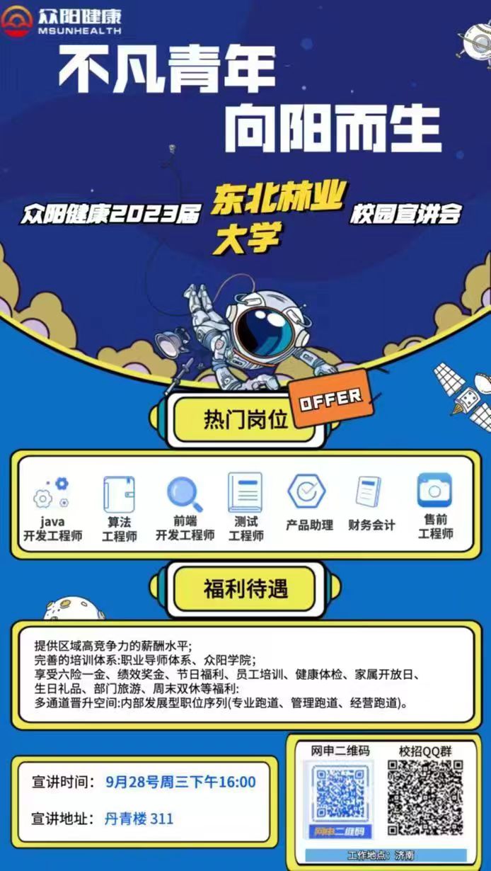 23届山东众阳健康校园招聘东北林业大学来啦