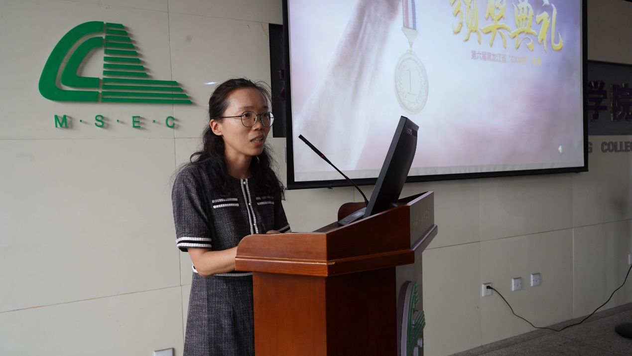 比赛结果统计阶段,由来自哈尔滨师范大学的评委代表作比赛总结,她在总结中提到:“在机遇与挑战并存的大背景下,我们第六届‘GAM’杯创新创业大赛的主题是先进材料的设计、制备和应用,与我们国家所提倡的绿色发展、绿色环保主题是相呼应的。今年恰逢建党百年,中国在党的领导下正逐步实现中华民族伟大复兴。我们不能忘记百年峥嵘岁月,要铭记历史,肩负起青年人的一份责任。”