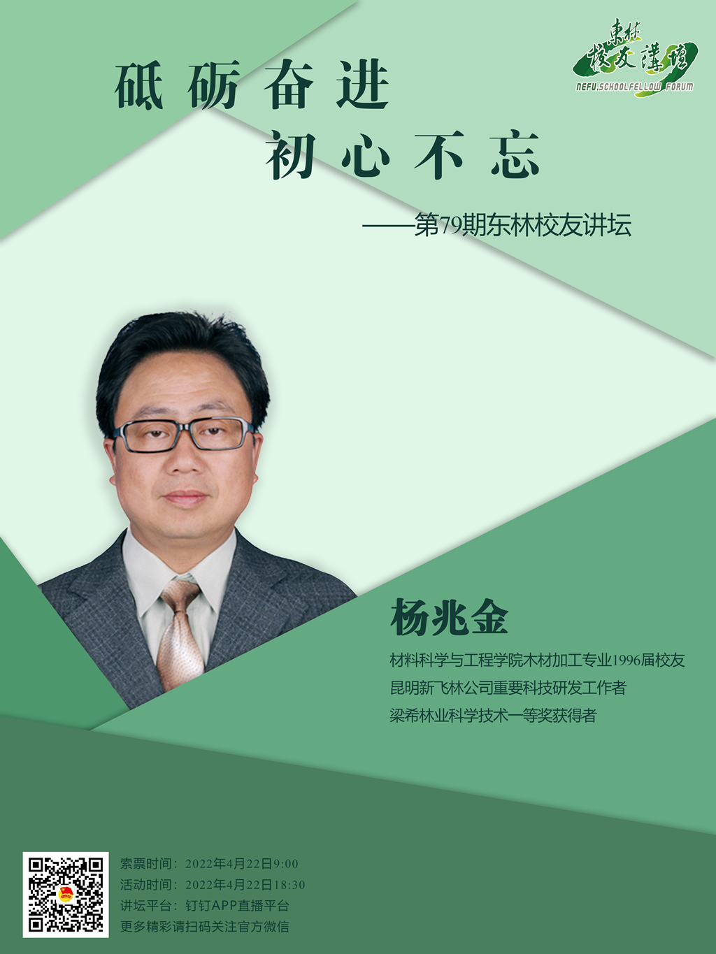 杨兆金校友,承秉东林精神并结合自身实际经历,分享自己刻苦铭心的发展经历和收获感悟。并在母校即将迎来建校70周年之际,衷心祝愿母校桃李芬芳,永铸辉煌。