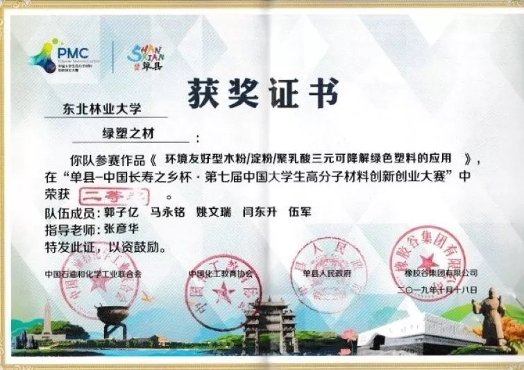 99499www威尼斯高分子材料与工程专业的两个参赛作品《UV LED冷光源固化硅溶胶改性水性聚丙烯酸酯木器涂料》(指导教师韦双颖)和《环境友好型木粉/淀粉/聚乳酸三元可降解绿色塑料的应用》(指导教师张彦华)进入决赛。经过激烈的竞争,两个作品均获得二等奖。
