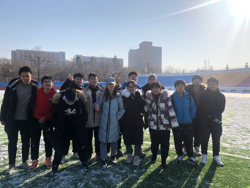 首先是人员上课的问题,考试与训练时间冲突,我们就在每周二周五和上橄榄球晚课的一起训练,然后周六周日再组织自己训练,平常有时间也会在群里问一下,只要凑够了四个人就开始训练了。还有就是训练场地的问题,由于最开始训练的时候还没有下雪,咱们这个项目又比较容易摔倒,只能去小红房前面的草地训练,但是又受到了蚊虫叮咬,最后大家克服了下来,以及训练后期天气转冷,下雪大风天气都是硬挺过去的。