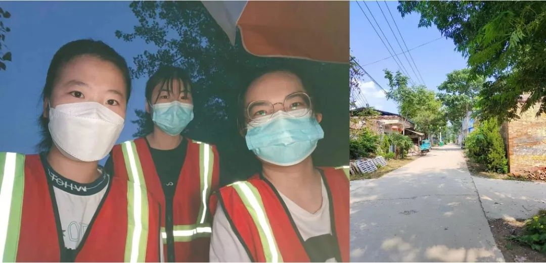 在家乡的疫情防控工作中,除了每天按时完成核酸检测外,贾可同学的其他工作主要就是按照志愿者小组分配的值班时间,每天早上五点到九点和同组队员一起在卡点执勤,耐心劝返外来村庄人员,拦截外来车辆。抗疫期间,不论是烈日骄阳、狂风暴雨还是蚊虫叮咬,她始终认真负责,坚守岗位。下图左就是贾可同学同志愿者小组其他成员早上五点到达执勤卡点后正在进行打卡的照片。除此之外,在疫情防控工作开始的前两天,贾可同学和小组成员还在进行着一项街道巡逻的工作,下图右为巡逻过程中所拍摄的图片,曾经热闹的街道因为疫情原因变得空无一人。在街道巡逻的过程中,如果发现村庄人员有外出或聚集现象,她就会对其耐心劝导,并告知防疫工作的重要性。在这次的疫情防控志愿者的活动中,贾可同学的认真负责,还得到了广大村民的认可,因为值班时间太早,经常来不及吃早饭,村民们便自发为她们送上一些热腾腾的食物,例如玉米,煎饼等。一份责任,一份担当,当她穿上志愿者红色马甲的那一刻,她不畏艰辛,砥砺前行,是因为在她的肩上多了一份责任,她从这份责任中懂得了担当。