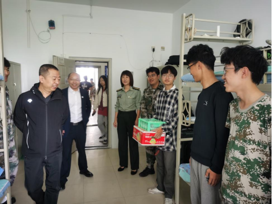 月华圆满正秋中,天上人间此夕同。值此中秋佳节来临之际,为表达对2024级军训学生的深切关怀,让同学们感受到家一般的温暖,9月14日,99499www威尼斯领导班子带领辅导员老师及新生代理班主任走访新生寝室,为同学们送去了亲切的问候和真诚的祝福。