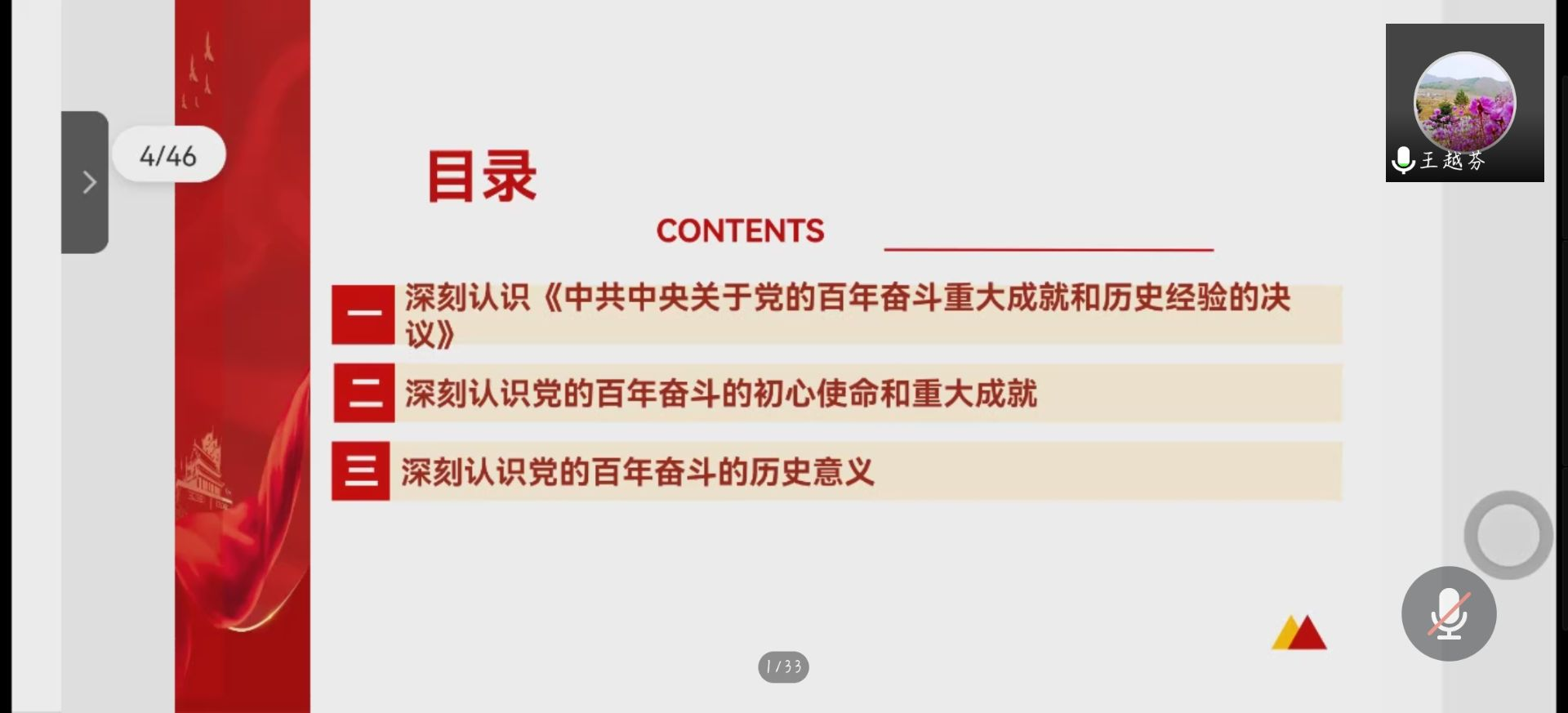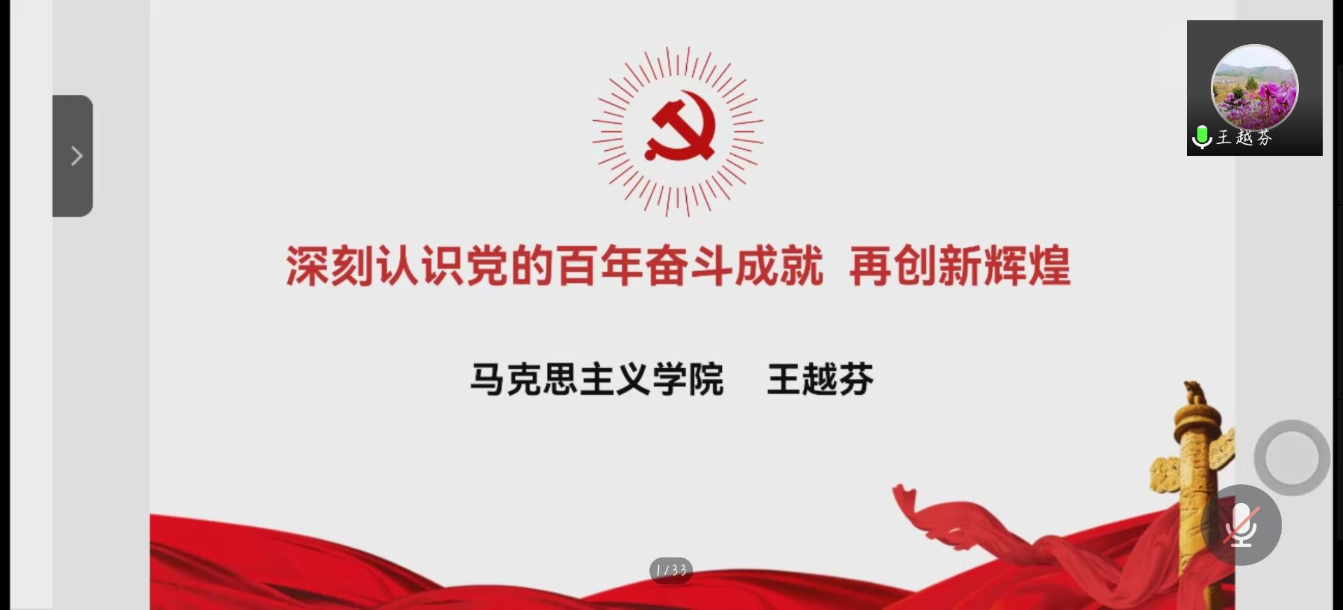 2021年12月17日,以材料团委全体成员、各团支部书记、副书记、组织委员及宣传委员为代表的团员们参加了由马克思主义学院王越芬老师讲授的以《深刻认识党的百年奋斗成就,再创新辉煌》为主题的讲座。在本次集中学习过程中,王越芬老师从以下三个方面为我们讲授了中国共产党第十九届中央委员会第六次全体会议精神。