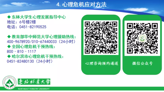 4.及时向辅导员、导师、心理中心或你信任的其他老师汇报。