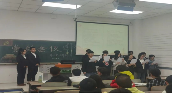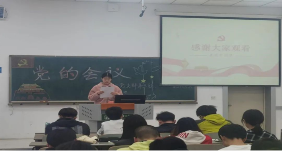 随后,林业工程成栋班带来朗诵,歌颂了在历史中磨砺成长的中国共产党。活动最后,第三小组的成员总结了本次党课学习活动,阐述了党课活动带给我们的意义。同时,为了巩固各位积极分子对党的会议的学习掌握,第三小组准备了相关习题,检测学习成果。让党的会议知识深入脑海。
