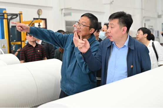 林化学科教工党支部一行人与一线技术人员进行了认真交流。校党委常委、副校长刘守新详细询问了解了卷烟纸生产工艺与前沿技术,他强调,新技术要与工人的经验完美融合才能实现产业的不断发展和进步。