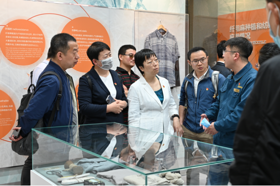一行人还考察了公司的汉麻馆。汉麻起源于中国,汉麻籽油可用于医药、食品、化妆品等行业,韧皮纤维可生产特种军用服装,秆芯粉可生产生物质燃料。大面积推广种植,可为解决“三农”问题闯出一条高附加值的新路。交流中,副总经理潘高峰介绍了公司在汉麻产业的全新布局,提出汉麻中药用成分CBD市场前景很好,但也存在一些技术瓶颈亟需解决。副校长刘守新表示,作为黑龙江省“头雁”团队带头人,我们有义务把龙江的教育科技资源优势更好地转化为经济社会发展优势,通过校企资源共享、优势互补、共同携手将龙江汉麻产业做大做强,为持续巩固提升龙江农村脱贫攻坚和乡村振兴质效再立新功。
