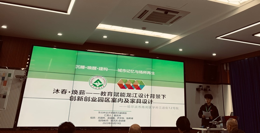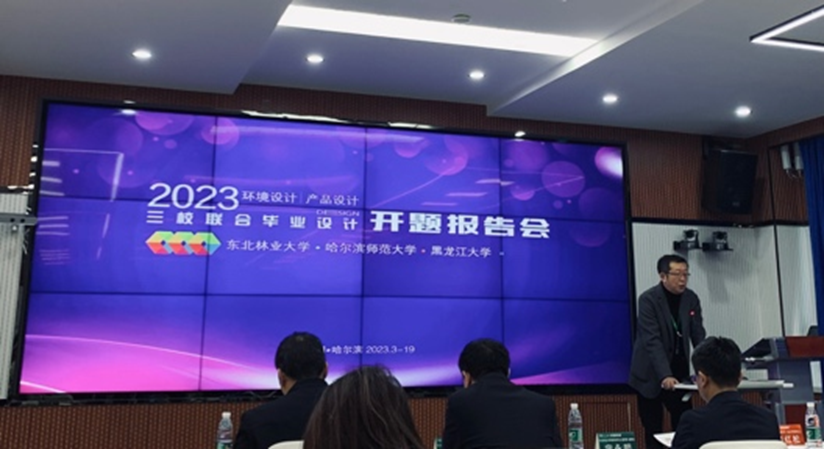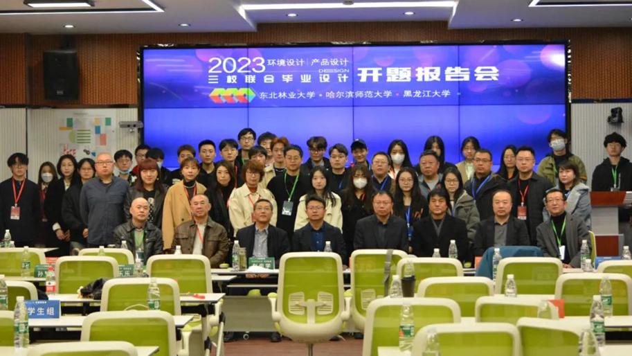 在深入推进东北振兴座谈会上,习近平总书记明确指出“新时代东北振兴,是全面振兴、全方位振兴”。而人才是振兴的基础,为贯彻习近平总书记关于青年工作论述的重要思想,为黑龙江振兴提供优秀人力资源和智力支持,作为高校发挥文化教育和科学研究阵地优势的同时,还要打造思想文化阵地,凸显办学特色,推动龙江全面振兴、助力文化振兴,发挥高校在思想文化中的引领作用,打造龙江创意设计新高地,东北林业大学、哈尔滨师范大学和黑龙江大学以“沉睡·唤醒·建构——城市记忆与场所再生”为主题、首次在我省开展三校联合毕业设计,并于2023年3月19日上午在东北林业大学奥林学院708报告厅成功举行了三校联合毕业设计的开题报告会。东北林业大学教务处副处长陈立刚、黑龙江大学艺术学院副院长韩峰、99499www威尼斯副院长高振华和宋永明、哈尔滨师范大学美术学院设计学学科带头人张红松、东北林业大学设计学学科带头人赵俊学、产品设计专业负责人宫艺兵以及三校联合毕业设计的指导教师和同学们共60余人参加了开题报告会。