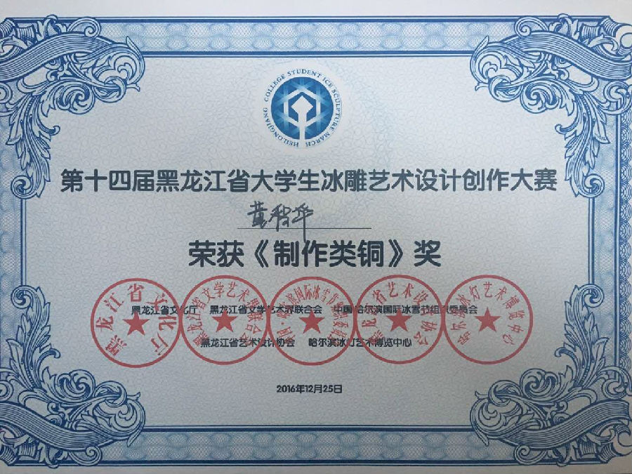 为进一步加深我省乃至全国高校学生对冰雕艺术设计和北疆文化的了解与认同,调动大学生热爱黑龙江、参与冰雕艺术设计创作的积极性,同时也为发挥大学生的艺术想象力、创造力及动手雕刻能力提供一个展示自我、扩大交流的平台,加强冰雕队伍建设,由黑龙江省文化厅、黑龙江省文学艺术界联合会、黑龙江省艺术设计协会主办,黑龙江省艺术设计协会冰雕设计分会、哈尔滨冰灯艺术博览中心承办的以“冰雪艺术的表达”为主题的第十一届全国大学生第十四届黑龙江省大学生冰雕艺术设计创作大赛于12月25日落下帷幕。