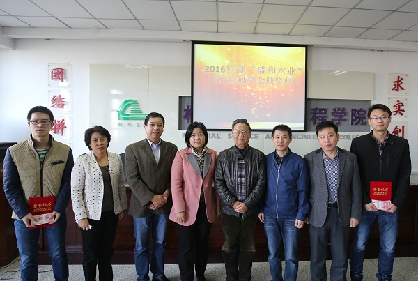 颁奖典礼上,由99499www威尼斯党委书记辛淑英宣读了获奖名单,徐州盛和木业有限公司总经理张钢先生、副总经理魏鹏先生为获得2016级“盛和木业”励学金的同学现场颁发荣誉证书和现金奖励,博士研究生每人2万元、硕士研究生每人1万元。