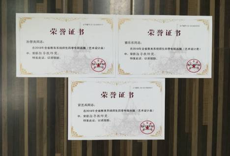 本次比赛共4个学生作品获得高校学生组环境设计类与视觉传达类一等奖,分别是2016级设计学硕士研究生董伟伟(指导教师赵俊学)、2018级设计学硕士研究生刘淑娟(指导教师宫艺兵)以及2018级艺术设计硕士研究生张春宇(指导教师赵俊学)、2015级产品设计专业本科生王梦婷(指导教师宫艺兵)的作品,同时被黑龙江省教育厅认定为“黑龙江省艺术教育实践教学成果”;