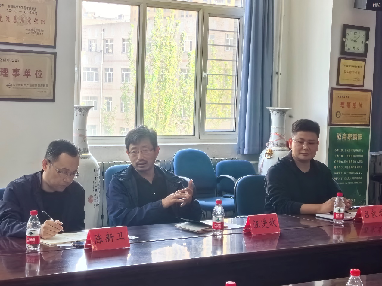 为推进东北林业大学与企业的产学研合作,2024年5月8日上午9:00,唐山三友集团技术中心二级专家汪进秋、产学研合作部部长陈新卫及化工材料研究院研究员吕佳龙来我院进行产学研合作交流。交流座谈会在工程楼604室召开,学院书记孟新、院长谢延军、未来学院执行院长黄占华、学院副院长李淑君、陈志俊、张彦华及学院与生物质材料研究、利用相关的教师近20余人参与座谈会。会议由学院副院长李淑君主持。