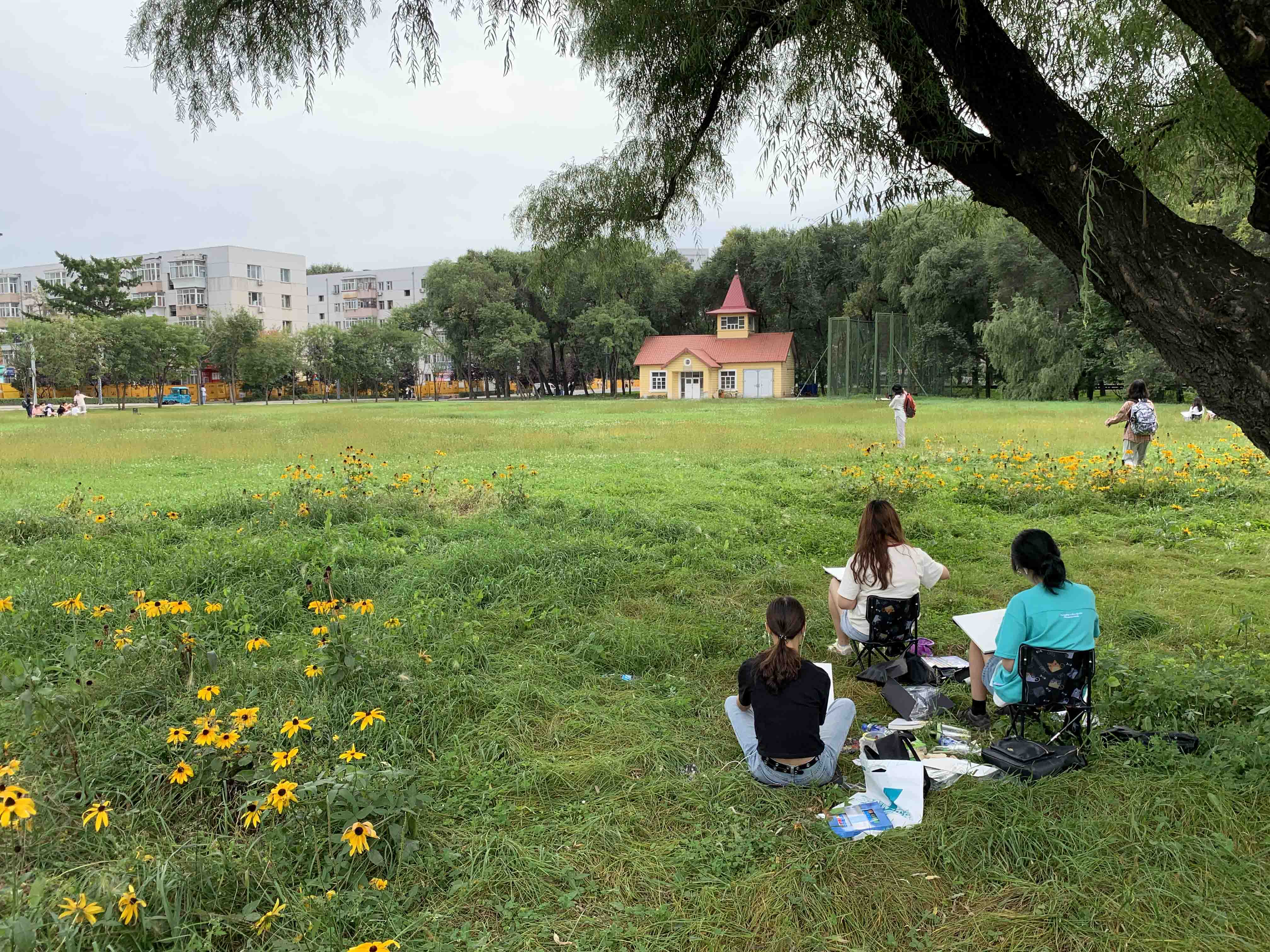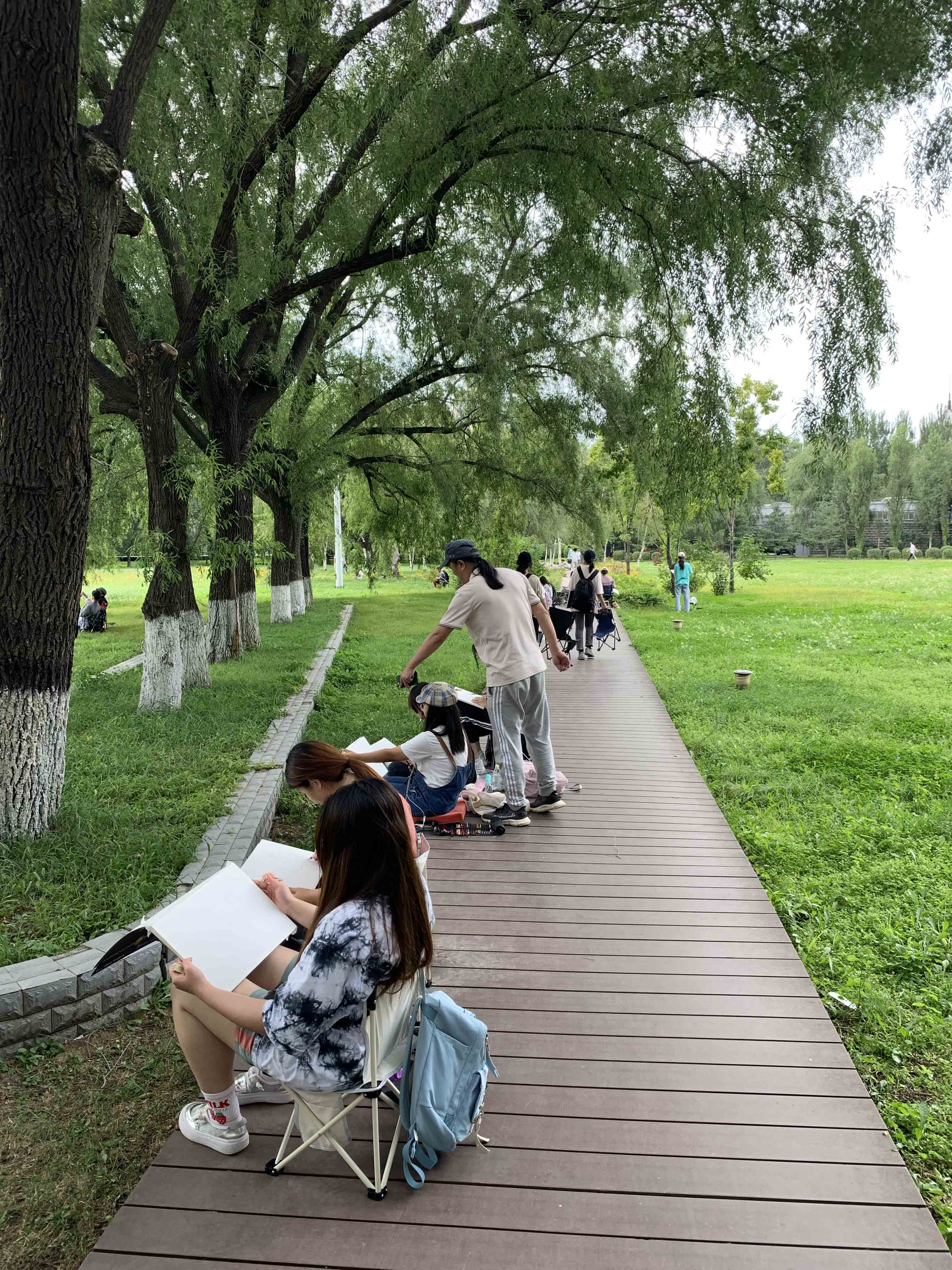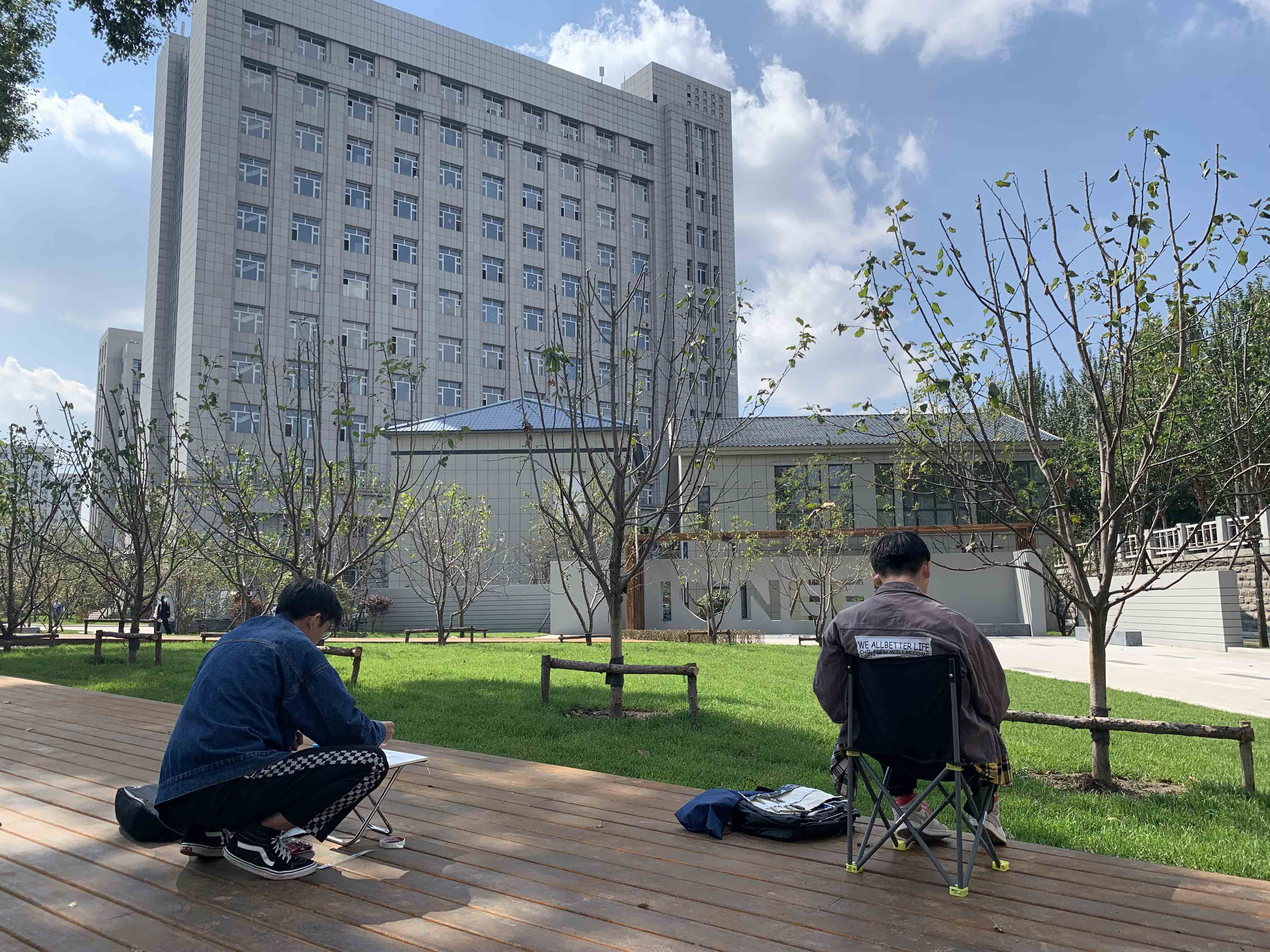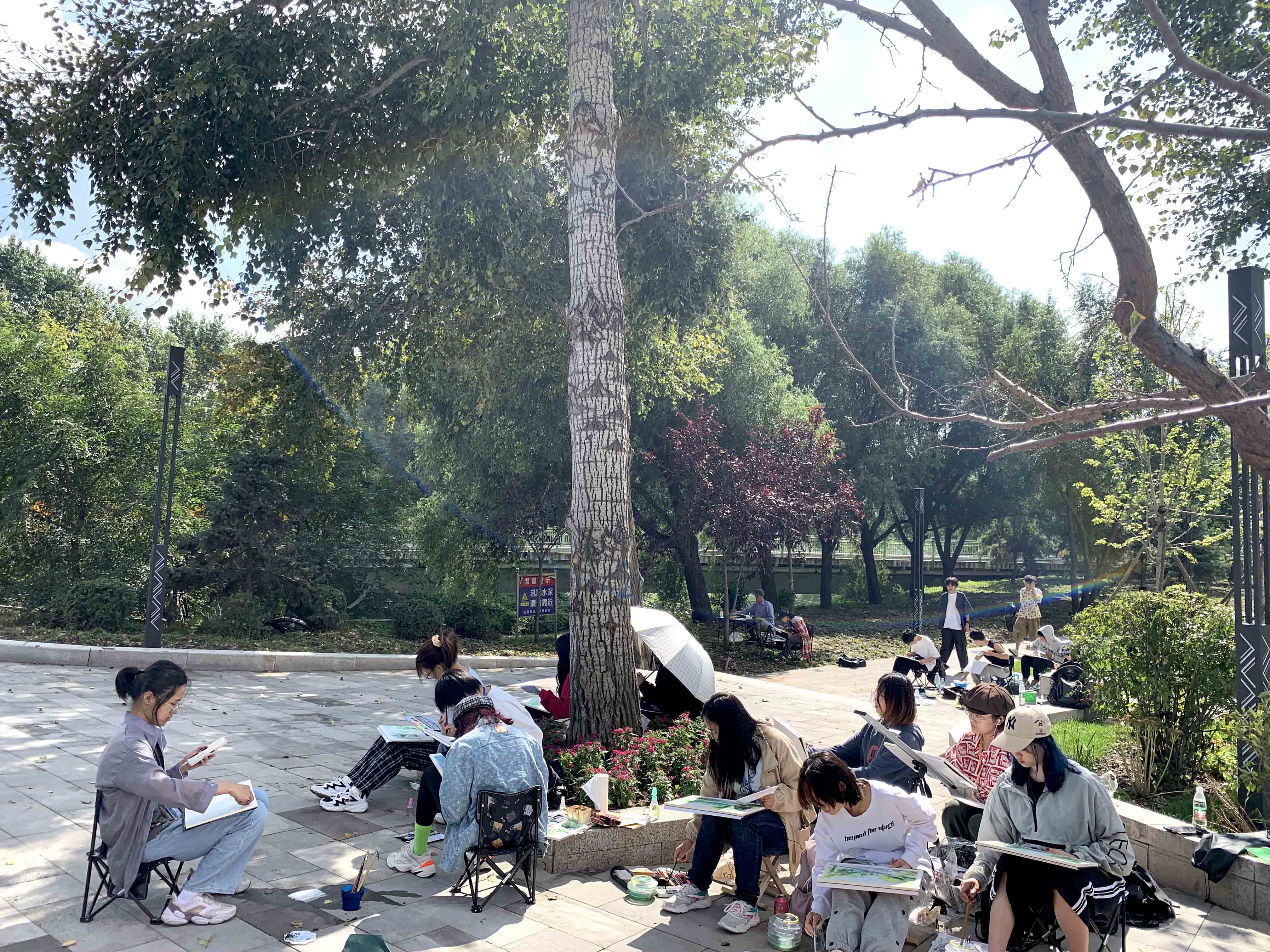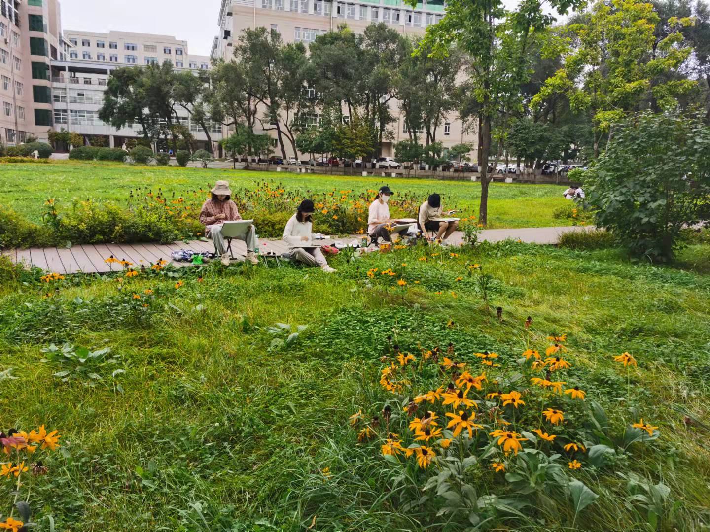 学生们校园写生场景