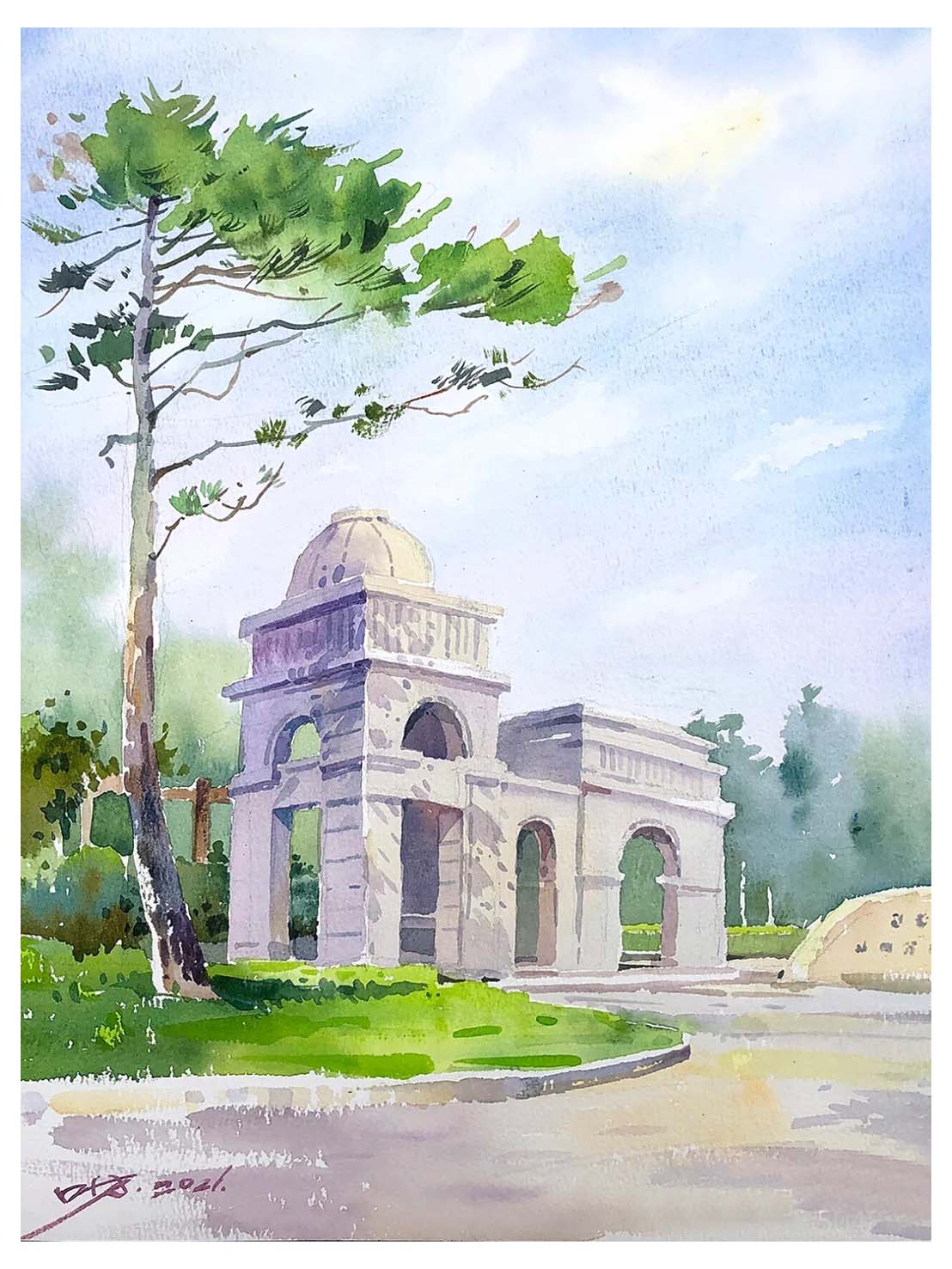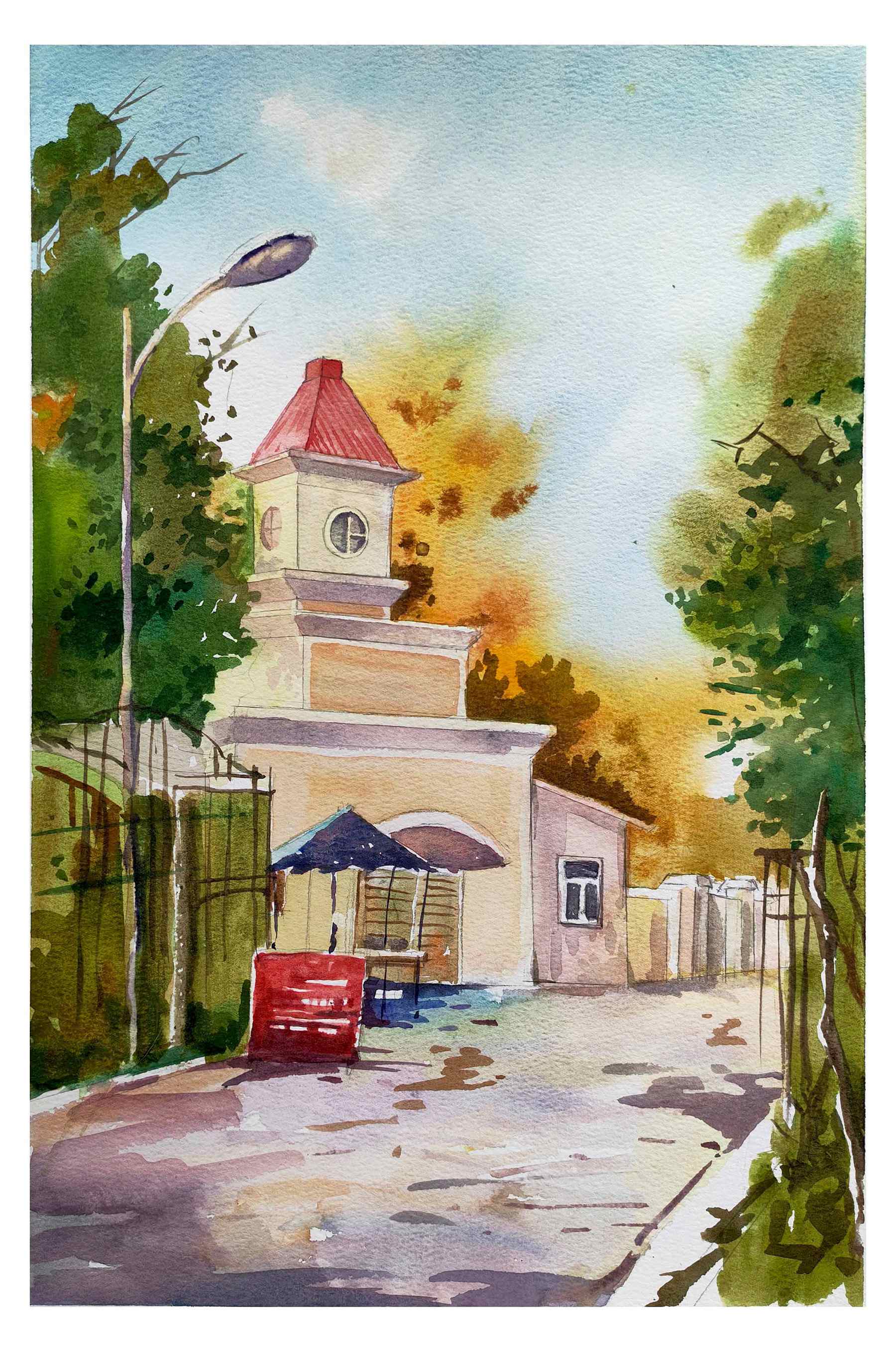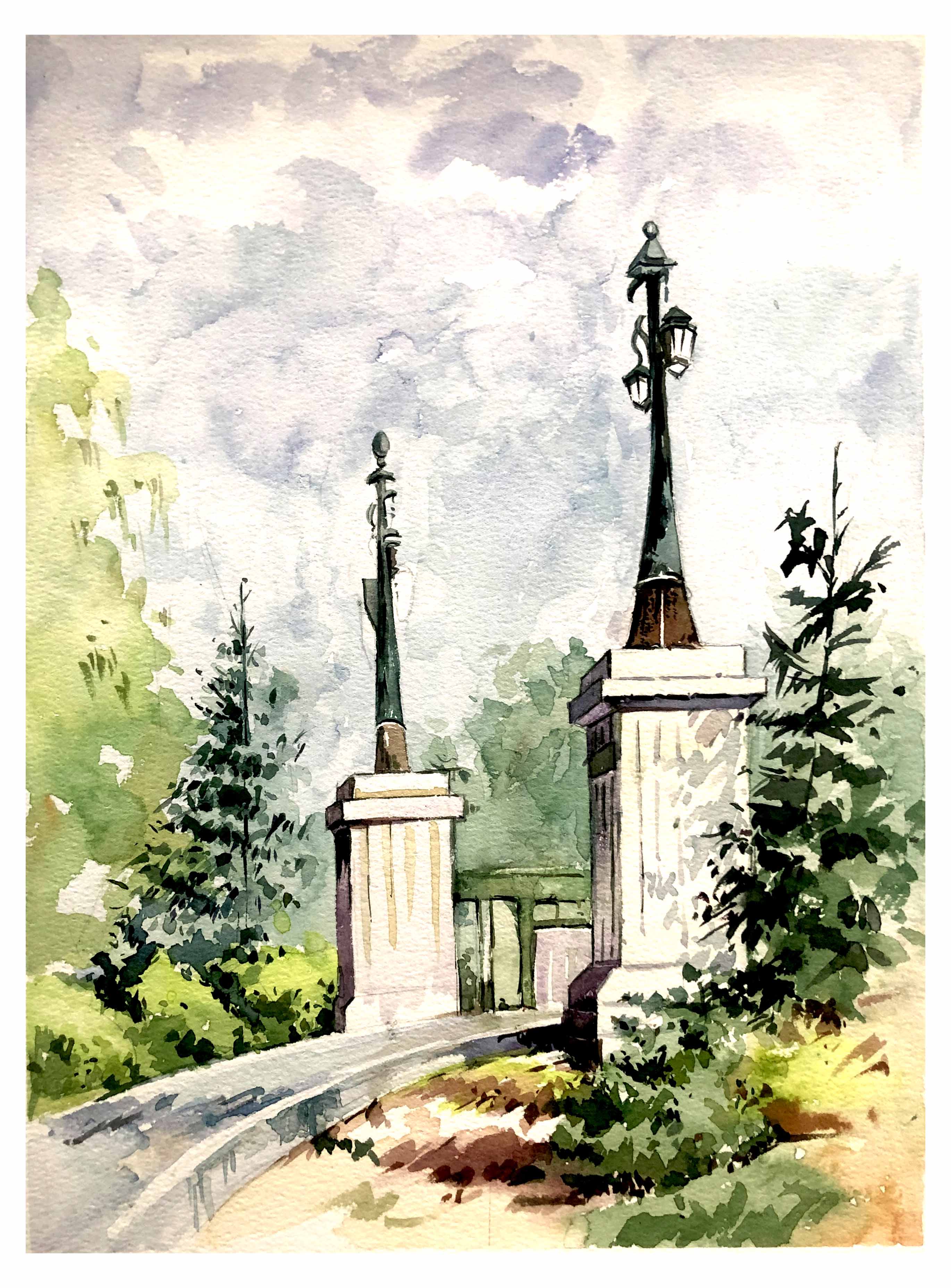 写生的对象多样化,有对单独的建筑的描写,也有对风景和建筑相结合的描绘,体现了建筑与人文、建筑与环境、建筑与生态的关系。同时也注意对大环境的整体观察和整体表现、每个季节都有属于每个季节独特的景色;此时又是个多雨的月份,天气气氛对画面会颇有影响,同一景物在不同的光照条件下可以形成完全不同的色调和气氛,这也可以锻炼学生们对色彩的掌控能力,可以更好的锻炼色彩感觉,与此同时,学生们也遇到了一些困难,例如:对素材的选取以及如何选景与确定构图;自然界中形象丰富、质感多样、气候、光线多变,如何处理好广阔与深远的空间关系等等,这都是风景写生需要解决的问题。
