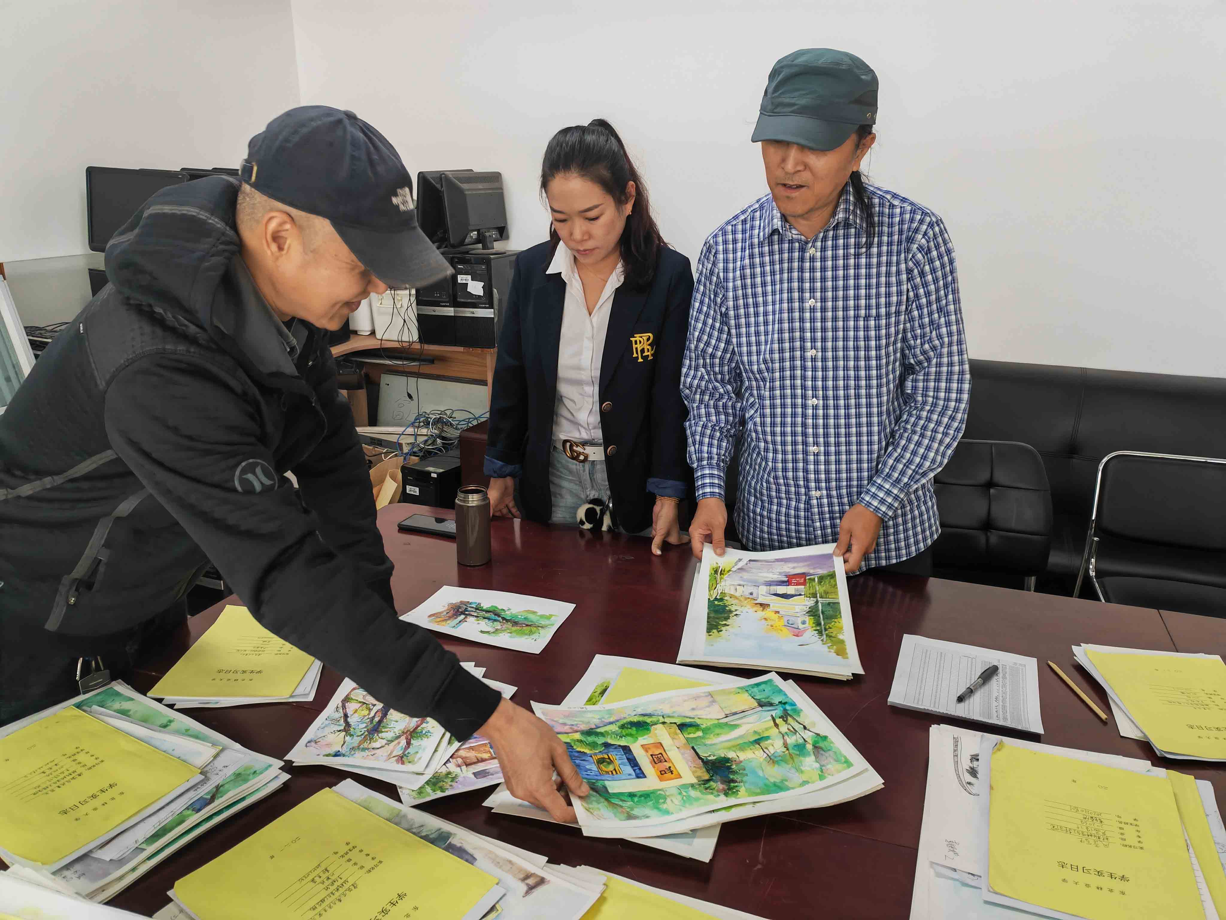 叶方老师现场指导学生 指导教师评阅学生绘画作品