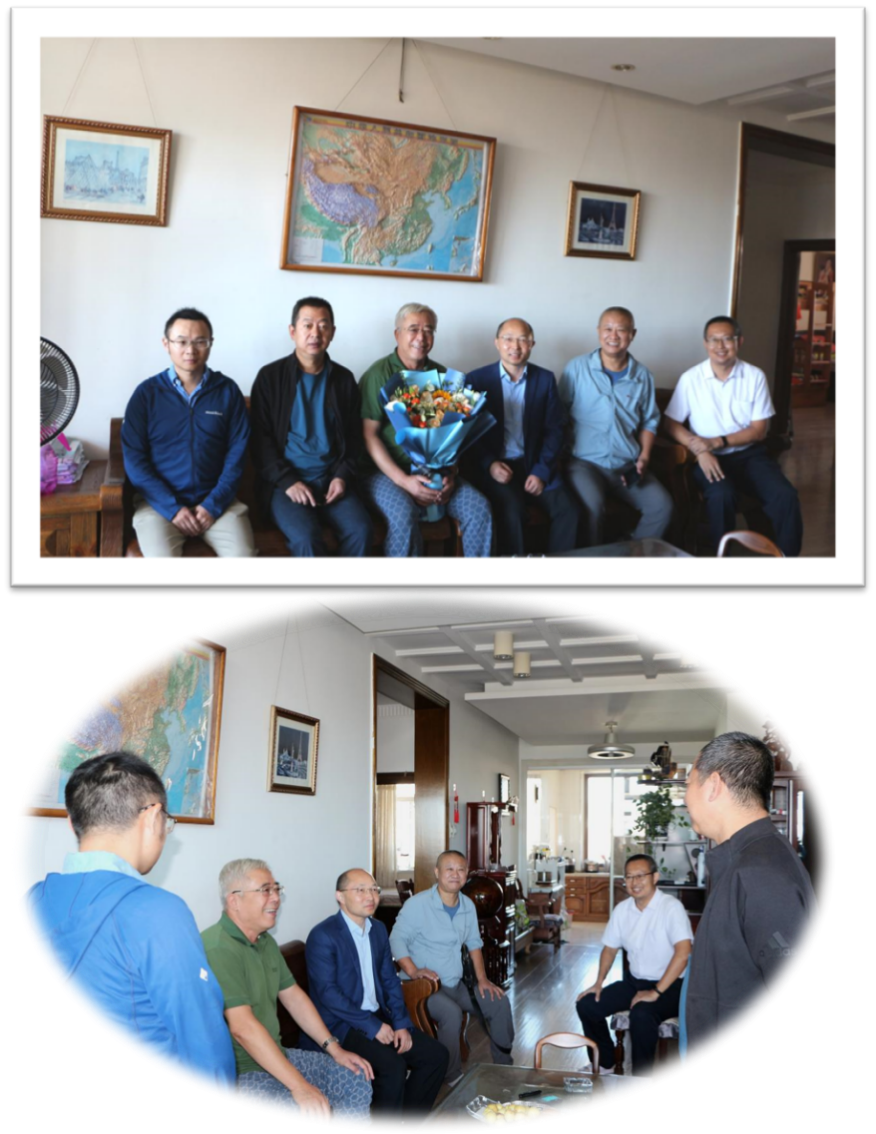 在朱政贤老先生家中,学院领导关切询问其生活身体情况,包括衣食起居、健康状况和照护情况,叮嘱老先生要保重身体,保持心情愉悦。老先生则心系学院发展,对院领导的关心和祝福表示感谢。