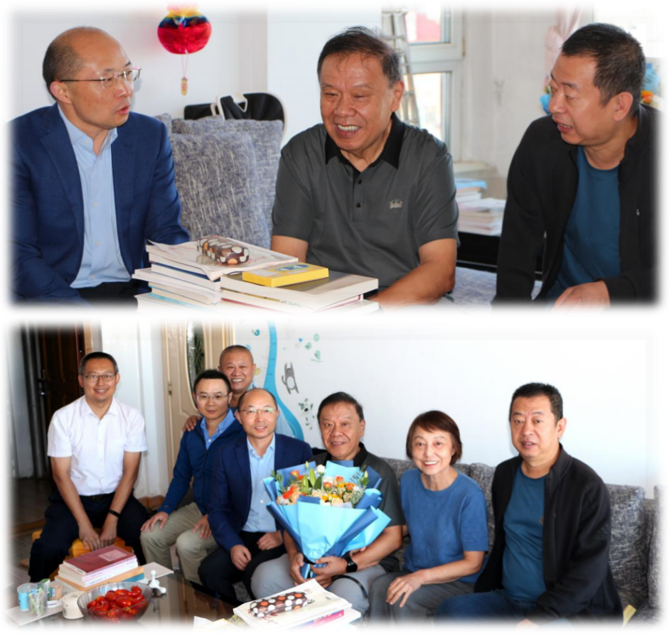 在顾继友教授家中,学院书记孟新对其的生活身体情况予以慰问,院长谢延军就学院生物胶粘剂科研进展与其展开探讨,悉心了解了顾教授对当下科研形势的剖析,并对顾教授为学院教育事业作出的杰出贡献深表感谢。