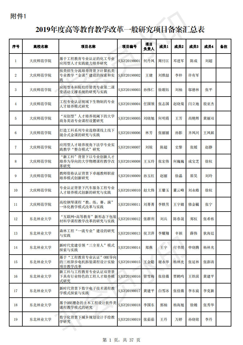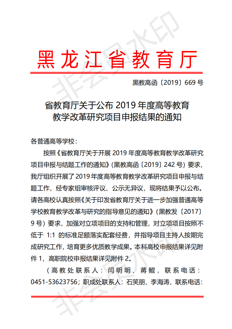省教育厅关于公布2019年度高等教育教学改革研究项目申报结果的通知