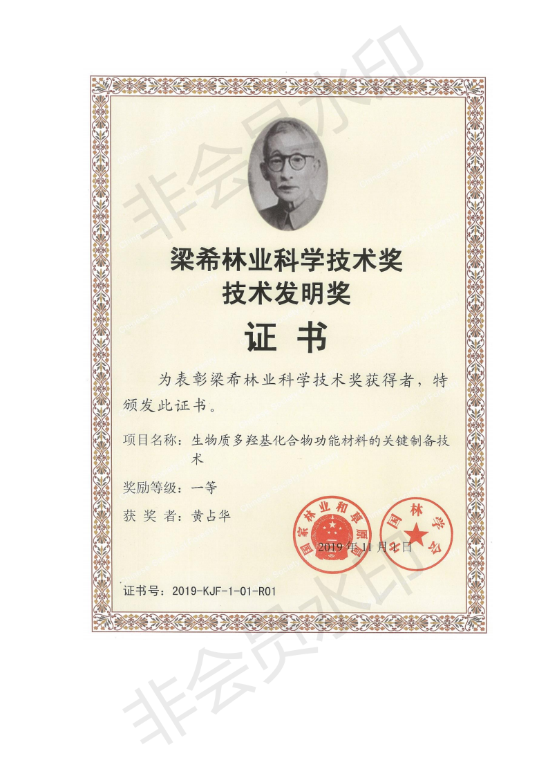 梁希林业科学技术奖技术发明奖一等奖(黄占华)