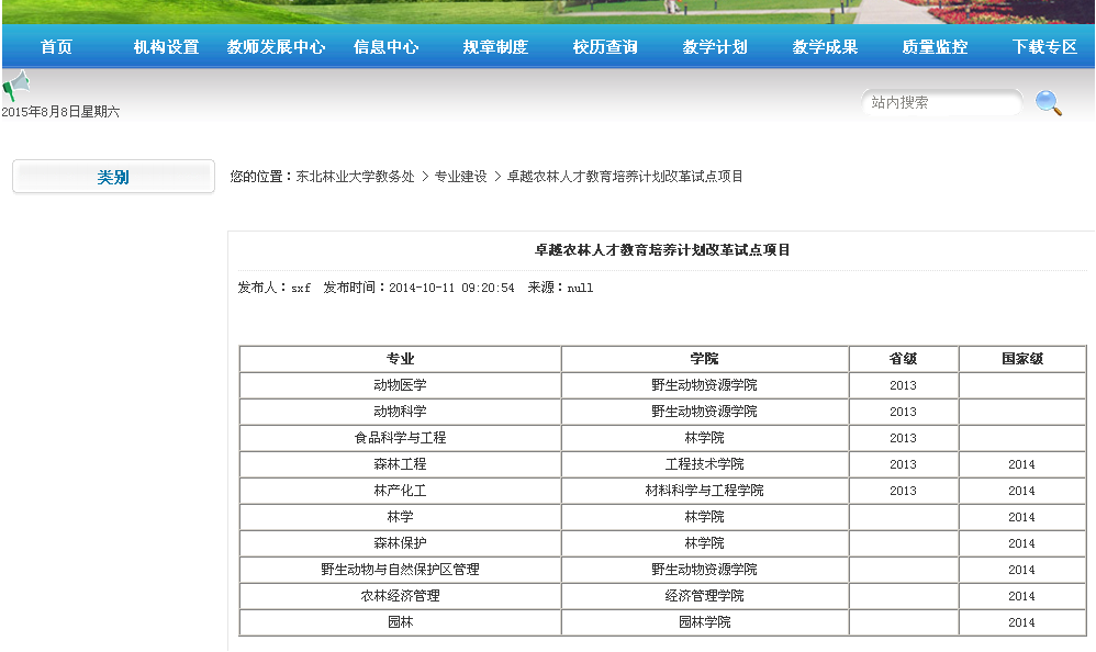 卓越农林人才教育培养计划改革试点项目
