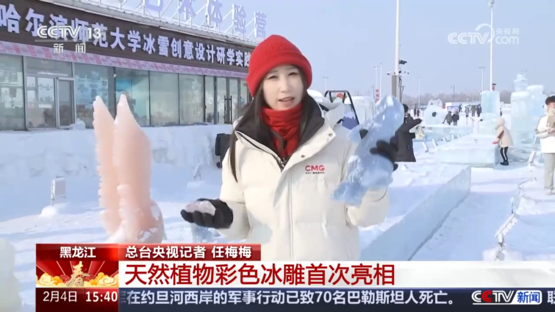 据了解,目前国际上使用彩色冰雪雕的国家非常少,即使有,也均使用工业色素,易掉色而且不环保。我校与哈尔滨师范大学联合研发的植物彩色冰,为冰雕艺术带来了焕然一新的视觉体验。