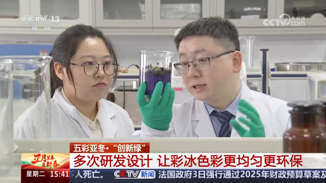 据陈文帅介绍:“我们加入了一些环境友好型的、植物级的分子,帮助这些色素在冰中非常好地分散,才达到目前我们这种效果。整个过程体系是绿色的、可持续的,这是我们一个最核心的理念,我们开发的这些试剂是环境友好的,当春暖花开的时候冰融化掉,它会变成营养物质沉积到土壤里,滋生花草的生长。”