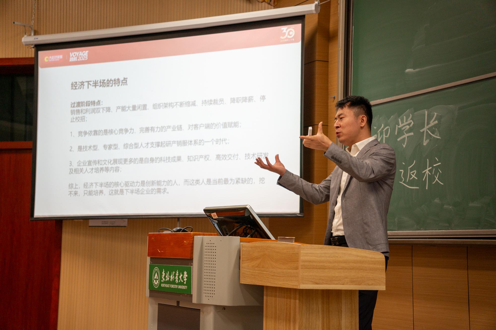 为帮助同学们明确职业发展、学习优秀校友的成功经验,木材科学与工程专业于2025年5月13日在锦绣T101成功举办校友分享会。本次活动邀请东北林业大学木材科学与工程专业2001级校友、木材工学博士、大自然家居(中国)有限公司研究院院长杨亮庆返校,为在校学生提供了宝贵的学习心得和职业规划指导。