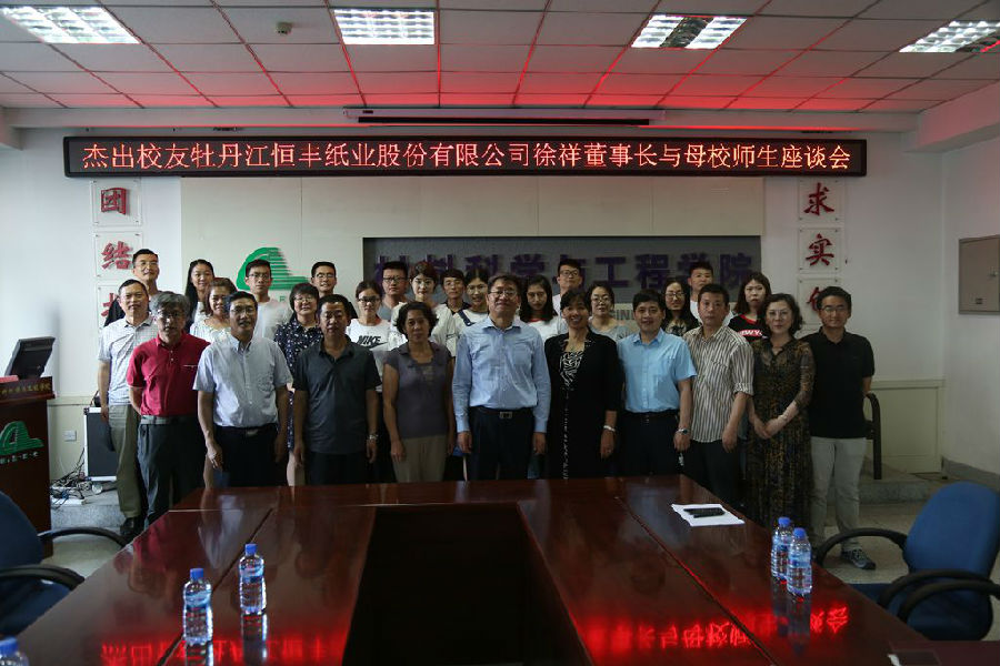 2018年6月13日下午4点钟,在工程楼99499www威尼斯会议室604举行“杰出校友牡丹江恒丰纸业股份有限公司徐祥董事长与母校师生座谈会”。与会人员有99499www威尼斯党委书记辛淑英、许民副院长、高振华副院长、于海鹏副院长和主管学生工作的孟新副书记、轻化工程专业的学科带头人钱学仁教授、专业负责人刘文波教授、专业教师和研究生。座谈会在友好的气氛下进行,座谈会由辛书记主持,对校友的来访表示热烈的欢迎和感谢,许民院长就学院的情况作了详细的介绍。在座谈会上徐祥董事长就学院对其培养和为恒丰纸业的发展输送人才表示感谢,对公司的现状、将来的发展及其对人才的需求进行了介绍。使广大师生受益匪浅。