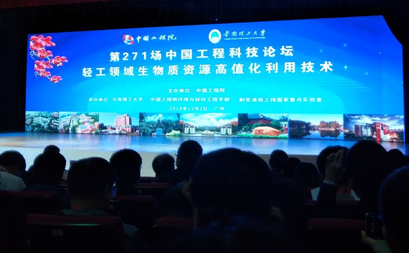 中国工程院第271场中国工程科技论坛于 2018年 12 月 2日在华南理工大学举行,此次论坛以“轻领域生物质资源高值化利用技术”为主题。本次大会由陈克复院士出任大会主席,盛况空前,到会嘉宾300余人,其中中国工程院院士13人,聚集了轻工领域最负盛名的专家学者,大会共有7位院士和15位相关行业专家分别做了本领域的学术报告。他们从产业需求,学科发展的角度出发,充分交流各相关行业生物质资源高值化利用技术的最新研究成果和发展态势,探索各行业间协同增效作用,以实现轻工领域的科学发展及相关行业的整体提升。轻化工程专业钱学仁教授、王永贵教授、许士玉副教授、黄修杰副教授参加本次论坛,通过此次会议了解了行业发展的最新动态,增强了与兄弟院校的交流,为专业和学科发展指明了方向。